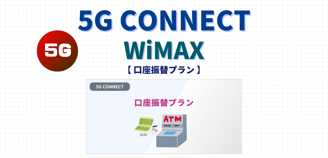 - 「口座振替プラン」のWiMAX端末は レンタル品 。ご契約が終了したら、5G CONNECT にWiMAX端末を返却する必要がある。